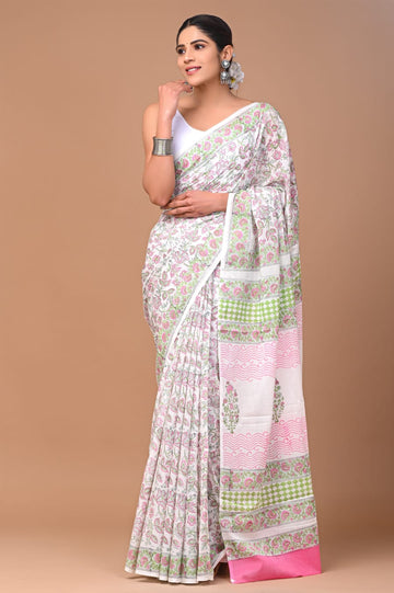 Bagru Hand Block Printed Mul Cotton Sarees