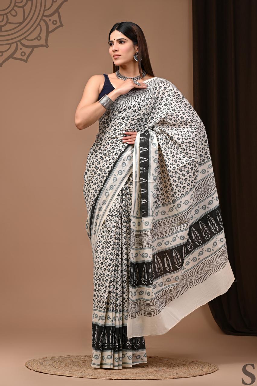 Darpana - Bagru Mul Cotton Hand Block Printed Saree