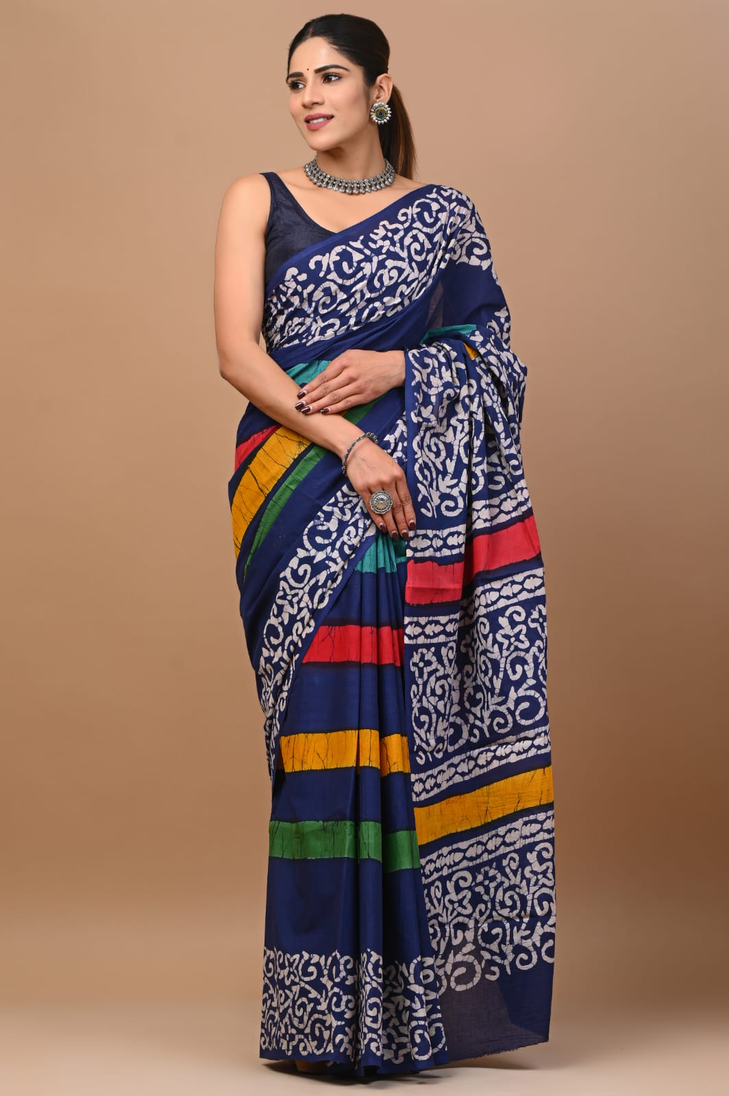 Step out in style with Maahishmati's exclusive Mul cotton Bagru hand-block printed sarees - each a masterpiece, handcrafted by skilled artisans using traditional hand-block printing techniques passed down the generations.