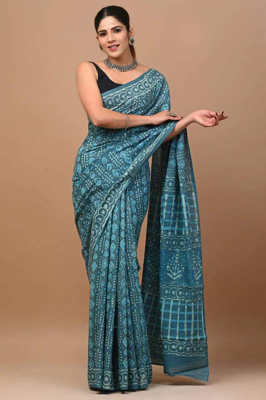 Drape this classy soft and comfortable hand-block printed mul cotton saree on any day or night and look classy as ever! It's fresh, it's vibrant yet graceful.