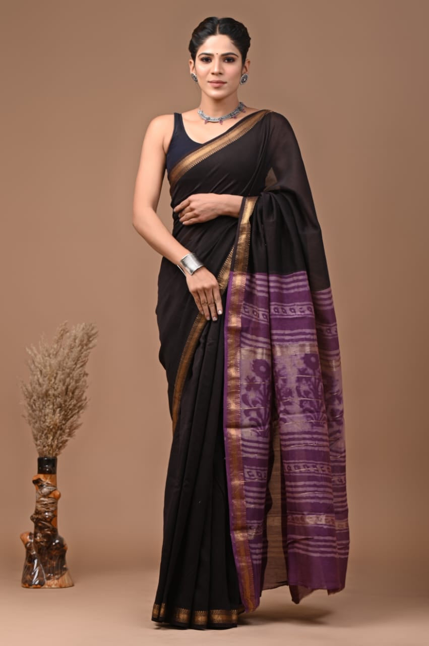 Madhubala - Bagru Hand-block Printed Silk Cotton Saree