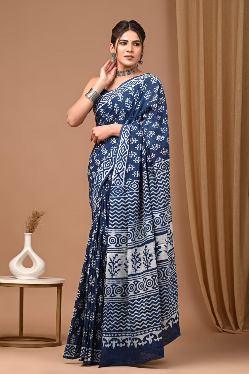 Bharti - Bagru Mul Cotton Hand Block Printed Saree