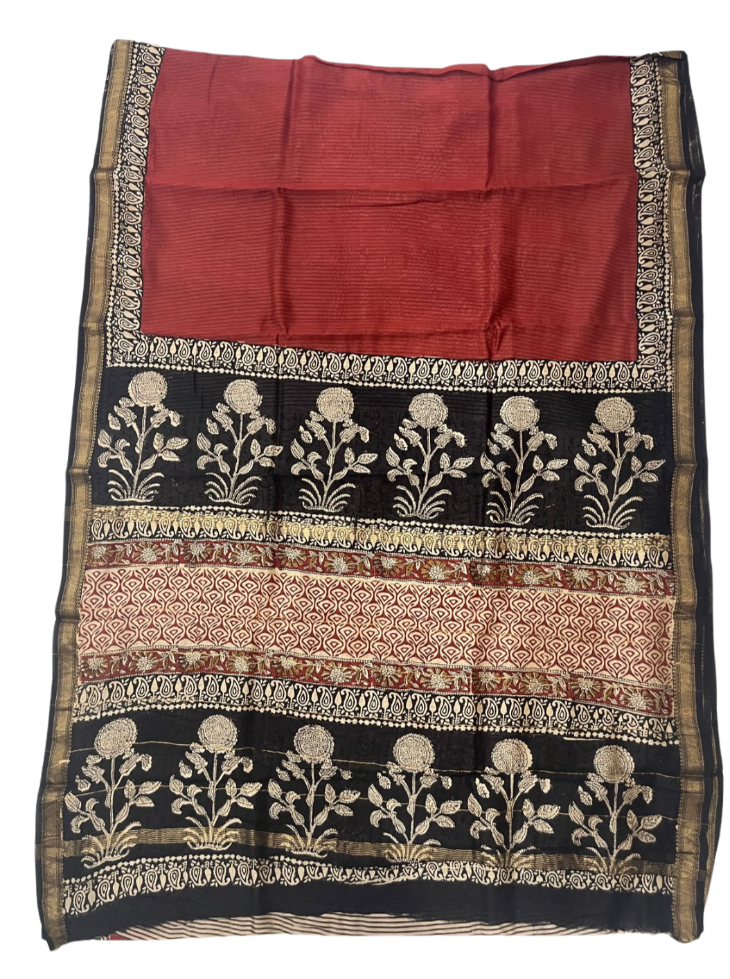 - Saree color is BRICK RED not DARK ORANGE.