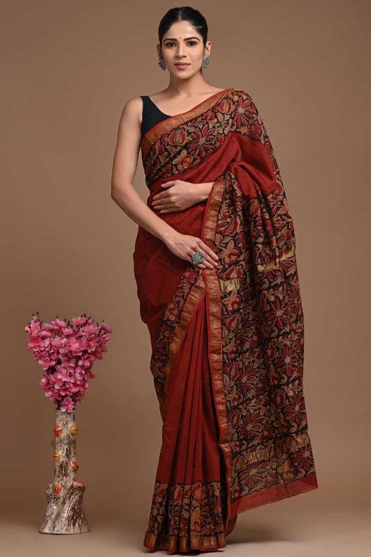 Tanishka - Red Bagru Hand Block Printed Silk Cotton Saree