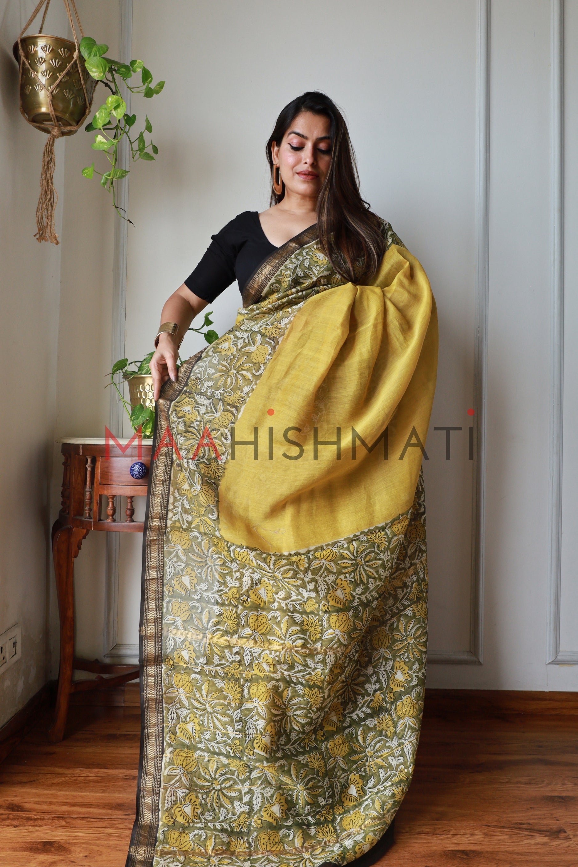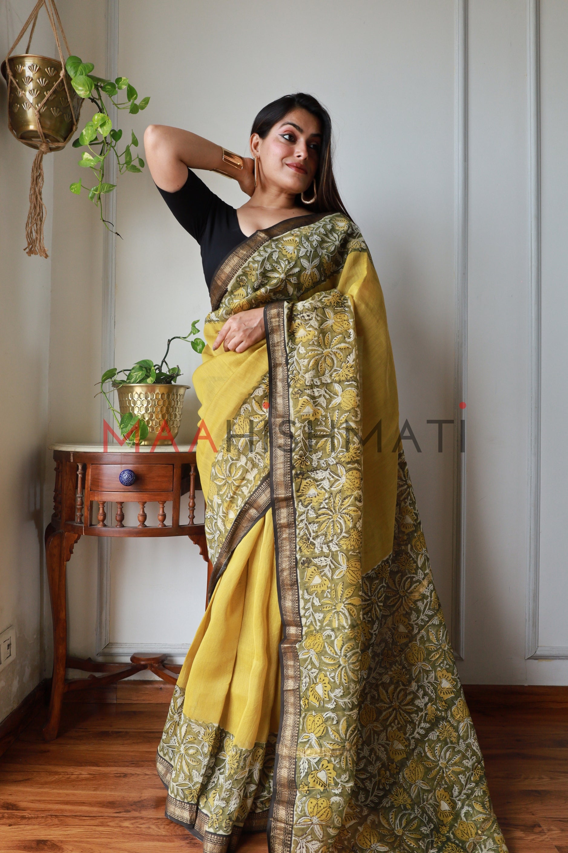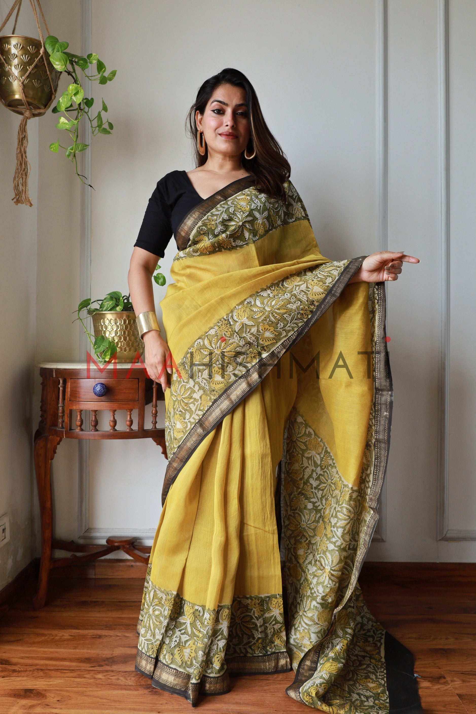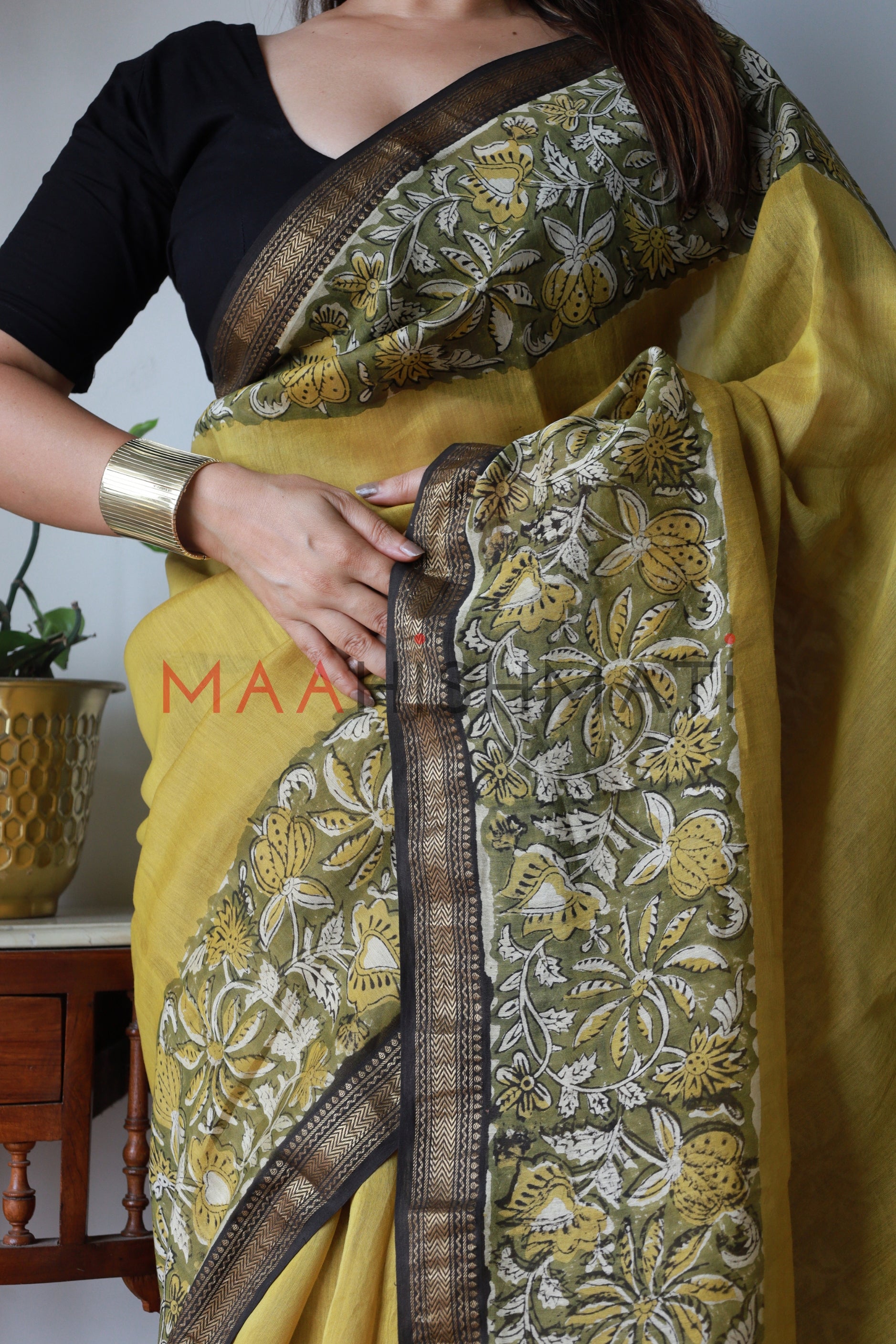 It's soft silk feels like butter on the body and the Bagru hand-block prints give it a rich and unique look. A saree for any day. You can pick this for a casual walk in the neighborhood or wear it to the office. Grab a coffee with your besties or go on dates with your partner. A family get-together or a social function.